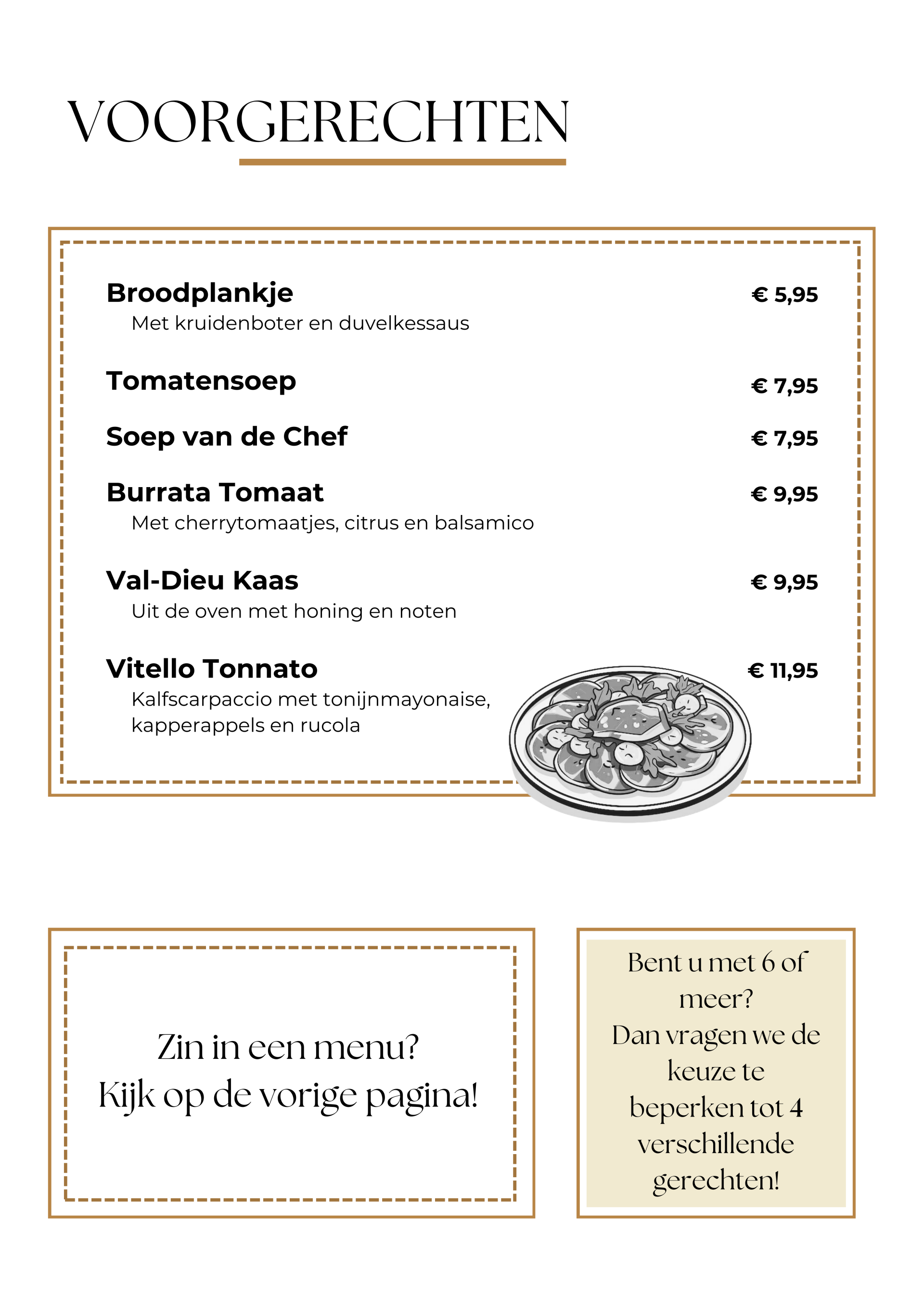 Hieronder kunt u ons menu vinden. Mochten er vragen zijn horen we dat graag via